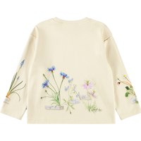 Off-white sweatshirt with a round neck and ribbed edge. The sweatshirt has a loose and relaxed fit with a print of colourful summer flowers.