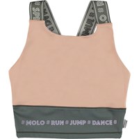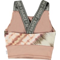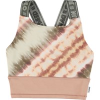 Oliva is a sports top in a beige and green tie-dye print. It has wide straps with a Molo text print, while the bottom part is in a rose colour. The top is perfect under one of Molo's sports jacket. Olivia is part of Molo's sports collection, which helps integrate sports and fashion. The top is comfortable and constructed in technical materials that make it wearable for down time as well as intense activity. Molo’s sports collection is created with a unique, high performance technology called HeiQ Smart Temp, which supports the body's own ability to cool down. The cool down function is activated when the body gets warm and sweaty. It is deactivated when the body has cooled down. HeiQ Smart Temp ensures optimal comfort and performance. It has been independently tested to ensure that it is safe for the skin.