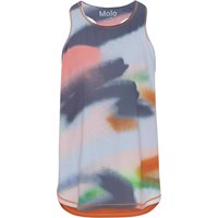 Oriana is a colourful sports top with a spray paint print and an orange back with wide, blue stripes with text. The top is part of Molo's new sports collection, which helps integrate sports and fashion. The top is comfortable and constructed in technical materials that make it wearable for down time as well as intense activity. Molo’s sports collection is created with a unique, high performance technology called HeiQ Smart Temp, which supports the body's own ability to cool down. The cool down function is activated when the body gets warm and sweaty, and then turns off when the body has cooled down. HeiQ Smart Temp ensures optimal comfort and performance. It has been independently tested to ensure that it is safe for the skin.