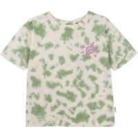 Green and white t-shirt in a tie-dye print with a purple placement print on the front. The print is of a purple sun that shines on everyone you meet. This t-shirt is in 100% cotton, has a round neck with a rib edge, short sleeves and is in a regular fit.