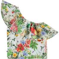 Wonderful, asymmetrical top with a beautiful, large ruffled edge in a colourful wildflower print.