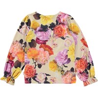 Raina is an organic, long sleeve top in the all over Rose Garden print that depicts all the garden's roses. It has full sleeves with an elastic that creates a ruffle effect at the cuffs.
