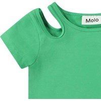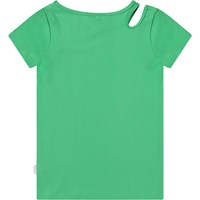 Fitted green t-shirt in organic cotton with a round neck and opening on the right shoulder, adding a nice detail to the t-shirt.