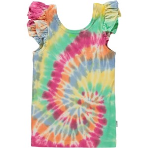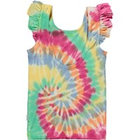 Ranja is a vest in tie-dye that can elevate any outfit. With its lovely poplin ruffle on the shoulders, Ranja is perfect for parties and everyday wear. Molo's tie-dye print is unique and made by hand, so the print can vary from garment to garment.