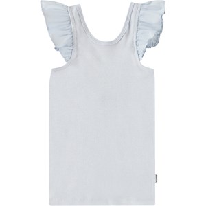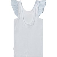 Light blue tank top in soft organic cotton. The top has a close-fitting design, poplin ruffles on the shoulders, and a deep back.