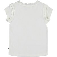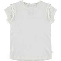 Rasa is a white top with really short sleeves. Rasa is 100% cotton and has ruffle edges at the sleeves and neck.