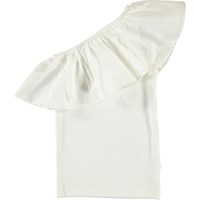 Rebecca is the ultimate summer top with its asymmetrical shape and lovely, large ruffle edge in poplin. The top is in white rib that gives it a great fit.