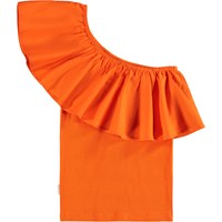 Red one-shoulder top made of organic cotton jersey with a close-fit and a wide poplin ruffle that runs over the shoulder and around the back.