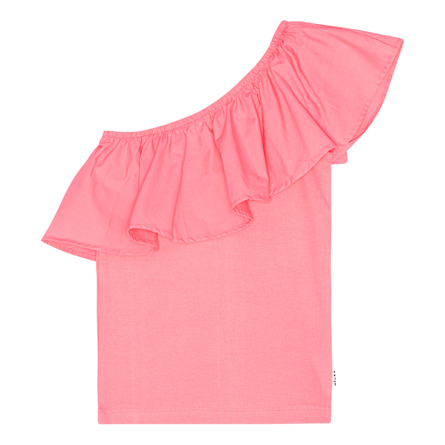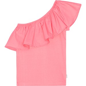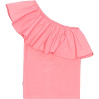 Pink, one-shoulder top in organic cotton with stretch. The top is in a snug fit and has a wide poplin ruffle at the neck.
