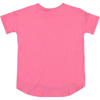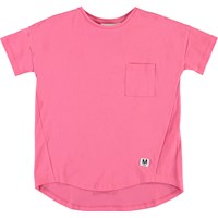 Renessa is a pink t-shirt with a small chest pocket. The t-shirt has a wide, loose fit.