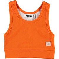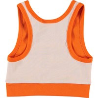 Rexxie is an orange crop top in rib with a light coloured back. Rexxie is the perfect cool detail when worn under, for example, a pair of dungarees.