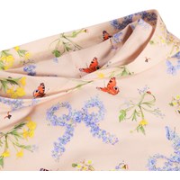 Pink hoodie made of soft, organic cotton with a kangaroo pocket and ribbed edges at the sleeves and bottom. The hoodie has a loose fit and is decorated with a print of butterflies and colourful flowers.