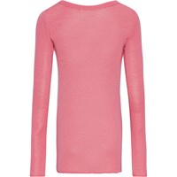 Pink long-sleeved blouse in merino wool with a close-fitting shape, round neckline, and baby lock edges on the sleeves and bottom of the blouse. Pair with leggings in the same colour for a complete set. Merino wool is super soft, lightweight, and keeps your child warm. With natural antibacterial properties that fight odour and fine fibres that feel comfortable against the skin, this blouse is ideal for layering, regardless of weather.
