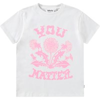White t-shirt in soft organic cotton with short sleeves and ribbed neckline. The t-shirt has a loose fit and a light pink front print of dandelions and the text 'You Matter'.