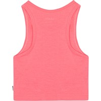 Short, coral-coloured tank top in soft viscose. The top has deep armholes and a discreet, 'More Love' print on the front.