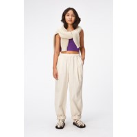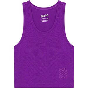 Short, purple tank top in soft viscose. The top has deep armholes and a discreet, 'More Love' print on the front.