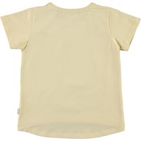 Risha is a yellow t-shirt with a floral print on the front. The t-shirt is slightly longer in the back.