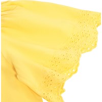 Yellow T-shirt made of soft organic cotton with ribbed neckline. The T-shirt has a loose fit and large sleeves with broderie anglaise, which drape beautifully in the sturdy cotton.