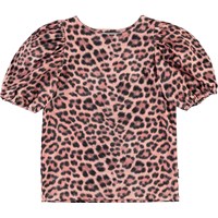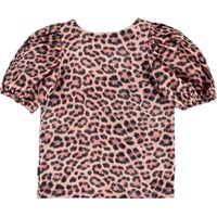 Rivera is a top with puff sleeves in a pink leopard print. The top has a round neck and an elastic edge at the sleeves cuffs so the sleeves sit perfectly.