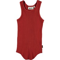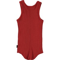 Roberta is a red rib vest, which is slightly shorter at the sides.