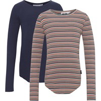 Rochelle is the perfect top that you can't get enough of. The top is in a rib quality and has thumb holes. This Rochelle top comes in a 2-pack with one blue and one striped top.