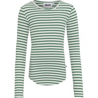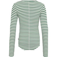 Rochelle is the perfect basic top that you just can't get enough of. Rochelle is in a beautiful green and white stripe. It is in a rib quality and has thumb holes.