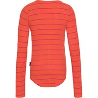 Rochelle is a long sleeved, slim fil top made from GOTS certified organic cotton.The top is red with narrow pink stripes and has long sleeves with thumb holes, and a round neck. This is super versitile and can be worn alone or styled with either a jumper or a jacket over it.