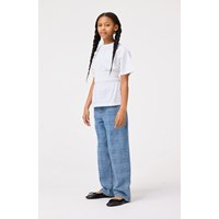 White t-shirt in organic cotton with short sleeves and ribbed neckline. The t-shirt has a smocked waist, which gives a nice finish.
