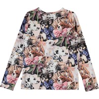 Rose is a long sleeve top with a print of small dogs that have ribbons around their necks. Rose has a round neck.