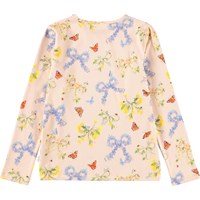 Pink long-sleeved top made of organic cotton with a round neck. The top has a close-fit with a colourful print of flowers and butterflies.