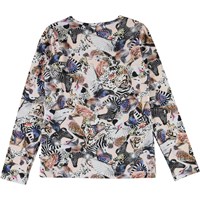 Rose is a long sleeve top with an all-over print of colourful animals. Rose has a round neck.