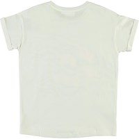 Rozinda is a white t-shirt with the print 'We love our ocean' in pink. The t-shirt has roll up sleeves and is in 100% cotton. Certified by Ecocert Greenlife, certification no. 197496.