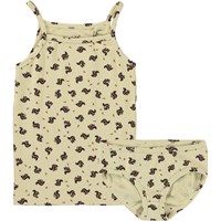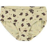 Underwear set wtih a top and knickers in light yellow with a print of small squirrels. The set comes in a small, sweet bag.
