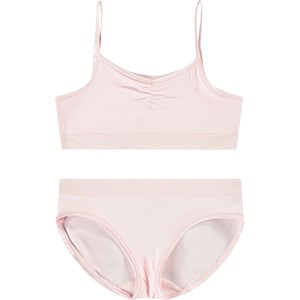 Pink underwear in soft and stretchy viscose. The top has thin elastic straps and a gathered seam at the front, giving it a nice cut. Both the top and bottom have a wide elastic band, ensuring a good fit and comfortable comfort.