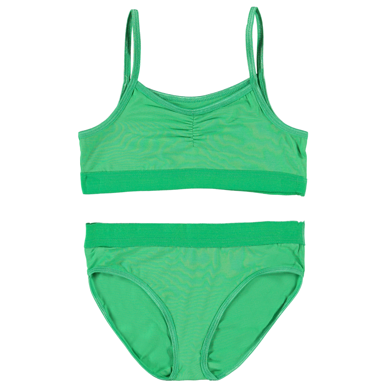 Jinny is an underwear set in green in viscose jersey. Both the top and the bottom have a wide elastic edge that ensures a comfortable fit.
