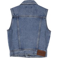Harry is a denim vest in blue with a button closure and front pockets on the chest.