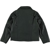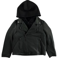 Holtti is a dark green leather jacket with a detachable hood. The hood is easy to zip on and off and makes it useful for many different situations. Holtti has a zip closure and pockets.