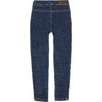 April is a pair of blue jeggings in a jeans look with an elastic waist. The stretchy quality ensures a good, comfortable fit.