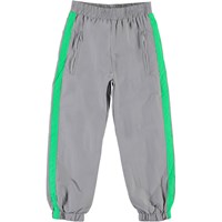 Avery is a pair of grey track pants with a wide, green stripe on the sides. Avery has zip pockets at the sides and elastic at the waist and legs. Wear Avery with the Mates jacket for a complete outfit.