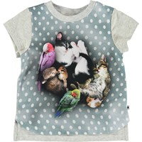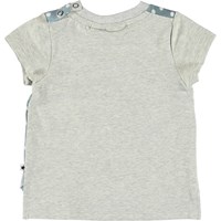 Pets have curled up for a nap on the front of the Erin baby t-shirt. Erin has grey sleeves and back.