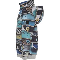 Cloudy is a sporty, waterproof softshell jacket in a skateboard print. Cloudy has a detachable hood, a zip front, side pockets and wind cuffs at the sleeve openings. It has an elastic edge at the bottom. Molo's softshell jackets are perfect for transitional weather because the fabric is waterproof, windproof and breathable. This product has a water resistant, PFC-free surface treatment (Does not contain, e.g. PF OS, PFOA, etc). Water column pressure: 8.000 mm. breathable: 3.000 g/m2/24hr.