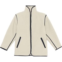 Halina is Molo's new fleece jacket in white. The jacket has a zip closure with a dark edge tape.