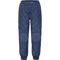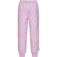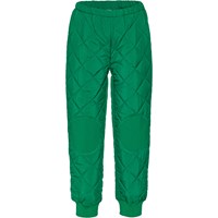 Beige, quilted thermal trousers in 100% recycled polyester in an all over print of wavy rainbows. The trousers have a rib edge at the legs and an adjustable, elastic waist. Thermal outerwear is ideal for transition periods, where winter outerwear is too warm but a summer jacket is too cold.Thermal outerwear is breathable and insulated without sacrificing movement and comfort. In the autumn and winter months, use thermal outerwear under rainwear as an extra layer of insulation.