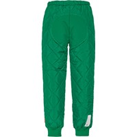 Green, quilted thermal trousers in 100% recycled polyester with a rib edge at the legs and an adjustable elastic waist. Thermal outerwear is ideal for transition periods, where winter outerwear is too warm but a summer jacket is too cold. Thermal outerwear is breathable and insulated without sacrificing movement and comfort. In the autumn and winter months, use thermal outerwear under rainwear as an extra layer of insulation.