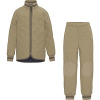 Hatton is a lightly insulated thermal set in pink. The jacket has rib edges at the neck and sleeves, and it has Molo's iconic reflector star on the back to ensure visibility in the dark. The trousers have elastic at the waist, rib at the legs and a star reflector on the back of one leg. The trousers also have reinforcement in a matching colour at the knees and seat, which makes them durable for all sorts of play.