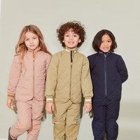 Hoti is a pair of lightly insulated thermal trousers in dark blue with an inner contrast colour in moss green. The trousers have elastic at the waist, rib at the ankles and Molo's iconic reflector on the back of one leg to keep a child extra visible in the dark. The trousers also have matching reinforcements at the knees and seat, whih makes the trousers durable for all sorts of activity and play.