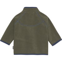 Dark green fleece jacket for smaller children with glove-shaped pockets and button closure on the front. The fleece jacket provides insulation and can therefore be used on its own or as an extra layer under outerwear on the coldest days.