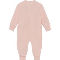 Umar is a rose coloured baby romper in 100% Merino wool with a button closure on the front. The romper has a roomy fit with roll up at the sleeves and legs.