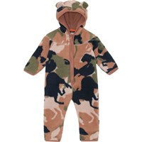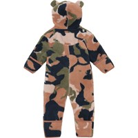 Umeko is a baby fleece romper in a rose colour with a camouflage print that looks like horses if you look closely. The romper has a zip closure, a hood and small sewn on ears. Molo's fleece rompers are warm and insulating. The fleece romper can be used alone or as an extra layer under a snowsuit on really cold days. Sizes 56-74 have feet while sizes 80-92 do not.
