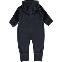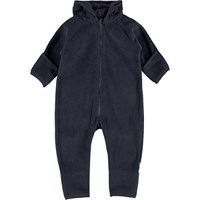 Umeko is a baby fleece romper in dark blue. It has a zip closure and a hood with small, sewn on ears. Molo's fleece rompers are warm and insulating. Wear it alone or, on very cold days, as an extra layer under a snowsuit. This style will be with feet from size 56-74. Without feet from size 80-92.